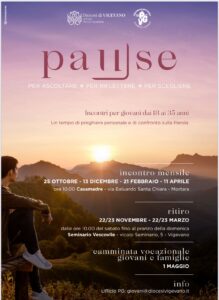 Prendersi una pausa non significa fermarsi, ma dare respiro al cuore e alla mente. È questo lo spirito con cui l’Ufficio diocesano per le Vocazioni e la Pastorale Giovanile della Diocesi di Vigevano propongono “pause – per ascoltare, per riflettere, per scegliere”, un cammino pensato per i giovani dai 18 ai 35 anni.